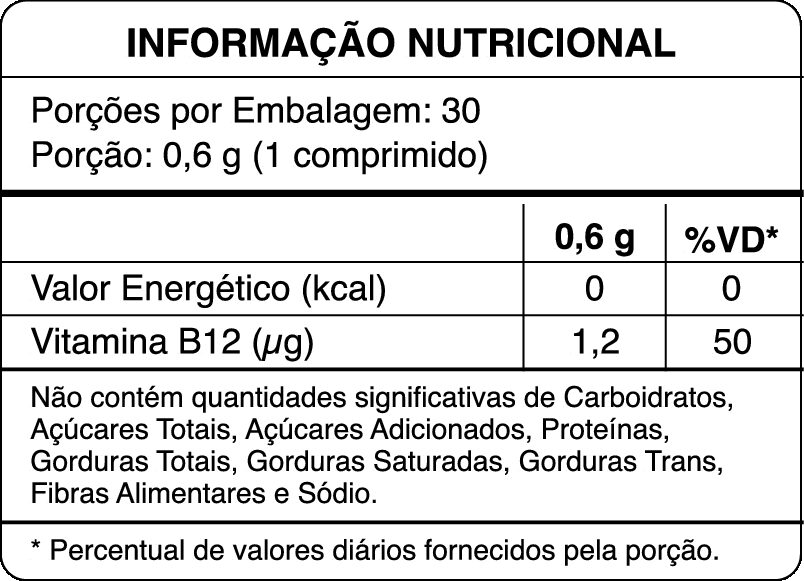 Vitamina B12 Metilcobalamina – 30 Comprimidos Mastigáveis